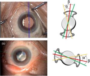 要有好的散光矯正效果,醫生會將矯散光人工晶體放置於應矯的散光軸上。散光軸配對錯位或人工晶體轉位,是令到術後有剩餘散光度數的主要原因。所以術前的屈光和人工晶體度數測量準確度非常重要。在量度屈光前,軟性隱形眼鏡佩戴者應停用一至兩周;硬性隱形眼鏡佩戴者則應停用一個月,才進行屈光檢查。病人亦應務求改善眼乾情況,保持良好眼表狀態,才進行人工晶體度數測量,以作最精確檢查。術後人工晶體旋轉移位最早可在術後一小時至十天內發生,尤其術後最初幾小時,特別是深近視、眼軸長的病人,人工晶體自我旋轉機會較大。建議植入矯散光人工晶體者,在術後1周內避免揉眼和劇烈運動,以確保晶體放置在應有的位置。