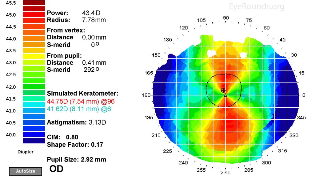 我們日常利用「自動折射儀」(Autorefractor)來測量散光度數,再利用「人手試鏡」(Trial lens)覆核,找出真正屈光度數的處方。在進行手術前,眼科醫生多會以「角膜曲率計」測量眼角膜的曲綫角度和弧度,更可以「角膜地形掃描圖」,像地圖一般精準地列出眼角膜多點的曲率,有助於發現角膜表面的缺陷和變形。