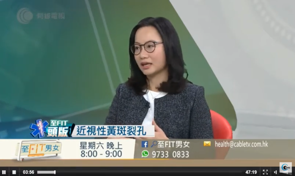 眼科專科醫生葉佩珮獲有線新聞《至Fit男女》邀請,講解深近視黃斑裂孔的案例和醫學知識。